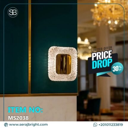 ابليك ليد كريستال مستطيل أبليك حائط ليد مصنوع من الكريستال الفاخر بتصميم مستطيل، يمنح انعكاس ضوء راقٍ مثالي للممرات وغرف